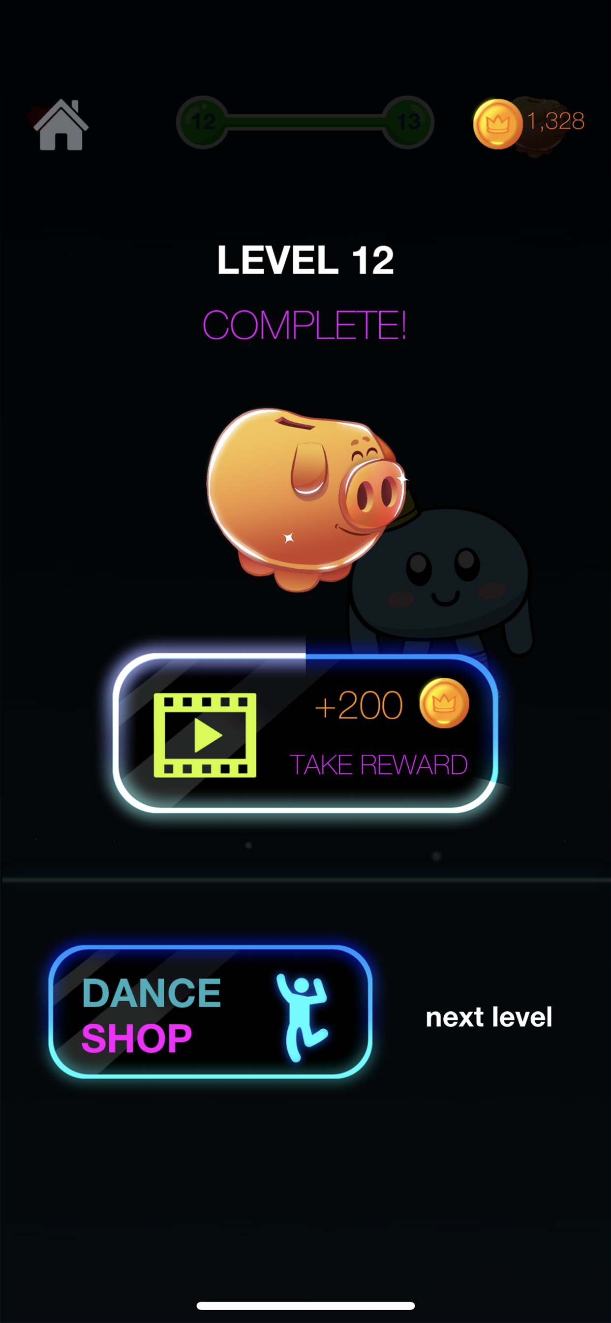 A hyper-casual game by Diesel Puppet for iOS and Android. The player’s task is to draw gestures shown in the left column of each wave. You have to do it quickly, since the list of gesture icons keeps moving downward. The game also features a shop where players can unlock different dances. At the moment there are 10 dance variations, each delightful in its own way. I especially enjoy the character’s animations.